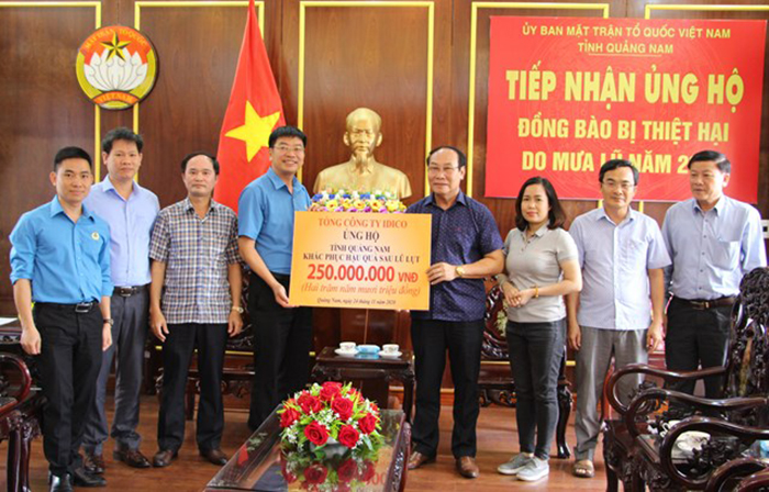 Trước đó, ngày 24/11, Ủy ban MTTQ Việt Nam tỉnh Quảng Nam đã tiếp nhận 250 triệu đồng của Tổng công ty IDICO ủng hộ tỉnh Quảng Nam khắc phục hậu quả sau lũ lụt.