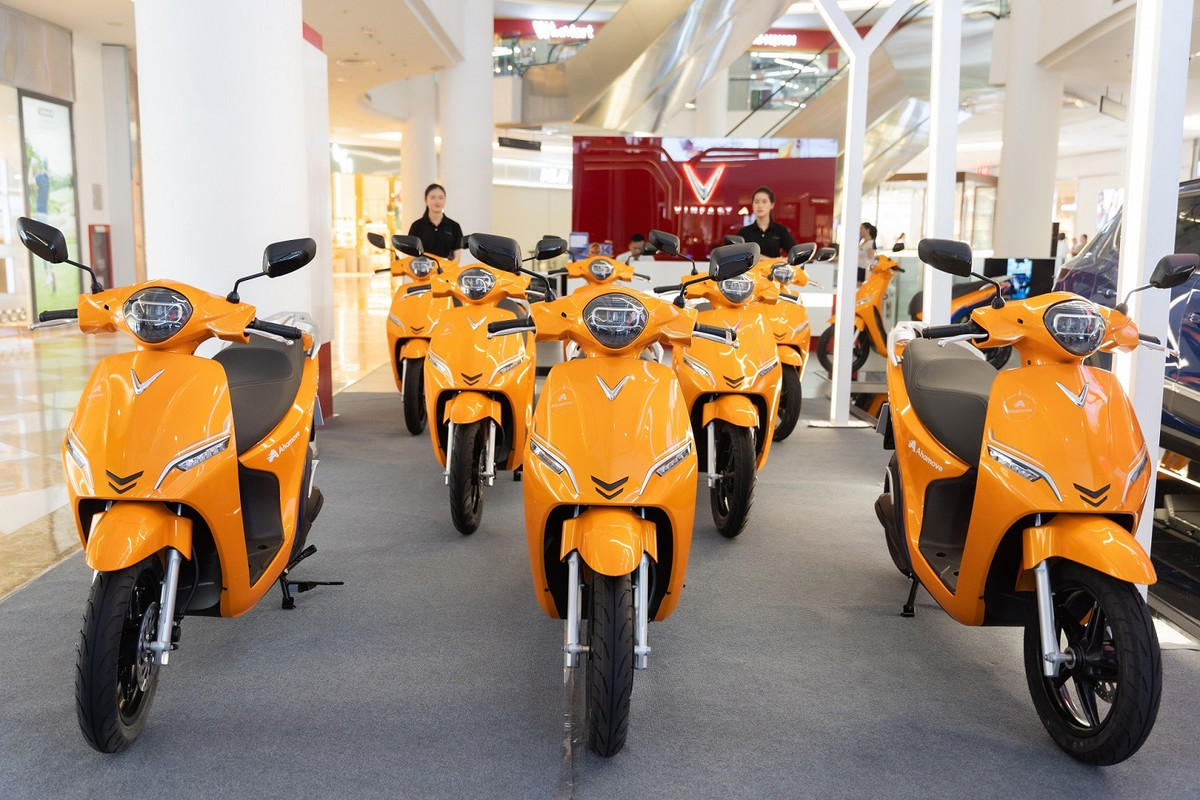 Những chiếc xe máy điện VinFast được Ahamove mua để triển khai dịch vụ cho thuê.