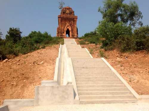 | Trùng tu tháp Bánh Ít như thể xây tường gạch bây giờ |