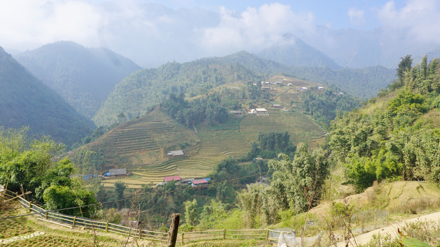 Nằm ngay dưới chân núi Hoàng Liên Sơn, bản Cát Cát ẩn mình, e ấp dưới sự bao bọc của mẹ thiên nhiên.