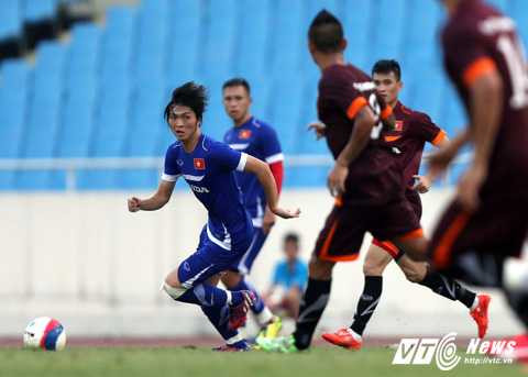 | Duy Mạnh chơi tròn vai ở tuyến giữa (Ảnh: Quang Minh) |