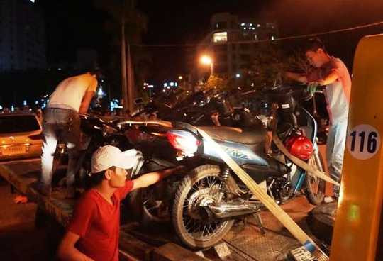 Những chiếc xe máy bị hư hỏng đang được đưa về trụ sở Công an TP Thanh Hóa để xử lý