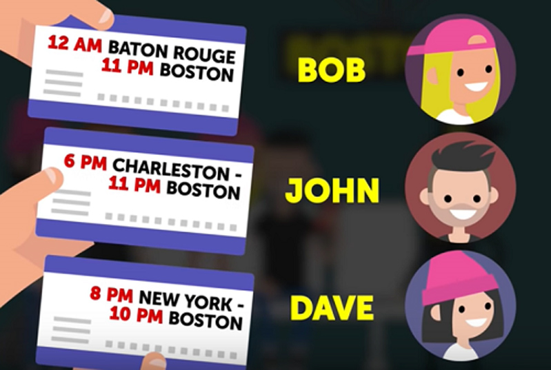 Mike đang đi từ New Orleans tới Boston bằng tàu. Có ba người ngồi cùng khoang tàu với Mike trong suốt chuyến đi.
