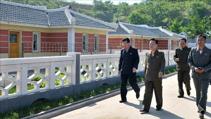 Ông Choe Ryong-hae (thứ 2 từ trái qua) tới thăm trang trại Co-op Poman ở quận Sohung. (Ảnh: Rodong Sinmun)