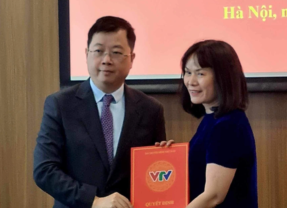 Tổng Giám đốc Đài Truyền hình Việt Nam Nguyễn Thanh Lâm trao quyết định bổ nhiệm Nhà báo, BTV Bùi Thu Thủy làm Phó Phụ trách Ban Sản xuất các chương trình giải trí. (Ảnh: VTV)