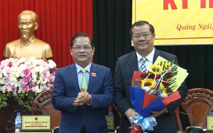 Ông Nguyễn Tăng Bính (phải) được phân công phụ trách, xử lý công việc và ký các văn bản thuộc thẩm quyền của Chủ tịch UBND tỉnh Quảng Ngãi.