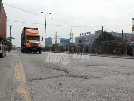 | Mặt đường Quốc lộ 5 hàng ngày đang bị "hung thần đất Cảng" cày xới - Ảnh Minh Khang |