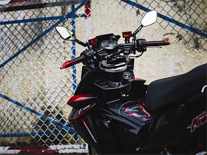 Thân xe được phối màu sơn đen-đỏ thể thao.