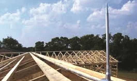 Một cột thiên lôi được người dân gắn trên nóc nhà, hạn chế trời sấm sét ảnh hưởng đến tính mạng