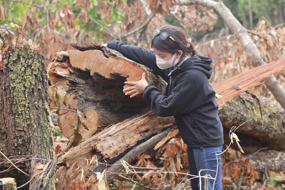 Cây gỗ đường kính hơn 1 người ôm bị cưa hạ tận gốc. (Ảnh: Hiền Mai)