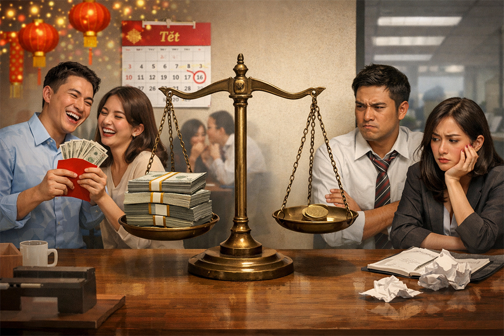 Thưởng Tết hiếm khi chỉ là chuyện tiền bạc. Nếu chỉ là con số, có lẽ người ta đã không để ý và sinh ra nhiều tâm trạng đến thế. Điều khiến nhiều người lao động chạnh lòng nhất là khoảnh khắc họ nhận ra: Công sức một năm của mình, khi đặt lên bàn cân so sánh, hóa ra lại nhẹ hơn rất nhiều so với người khác.
