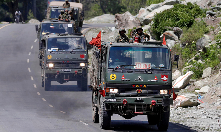 Đoàn xe quân sự Ấn Độ trên cao tốc đến vùng Ladakh giáp với biên giới Trung Quốc, ngày 18/6. (Ảnh: Reuters)