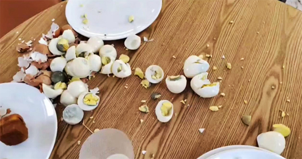 Những quả trứng bị đập nát. (Ảnh:Weibo/Huang Xipao)