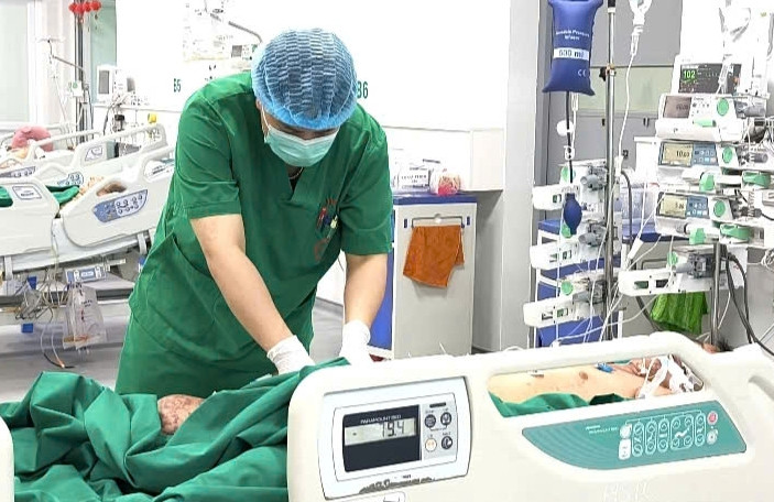 Tại Trung tâm Hồi sức tích cực, bác sĩ Trần Văn Kiên cho biết bệnh nhân nhập viện trong tình trạng sốc nặng: mạch nhanh nhỏ khó bắt, huyết áp tụt còn 90/60 mmHg, da niêm mạc nhợt, nhiều ban xuất huyết dạng tử ban rải rác toàn thân. Xét nghiệm ghi nhận tiểu cầu giảm sâu từ 21 G/L xuống 13 G/L, rối loạn đông máu và suy thận cấp.