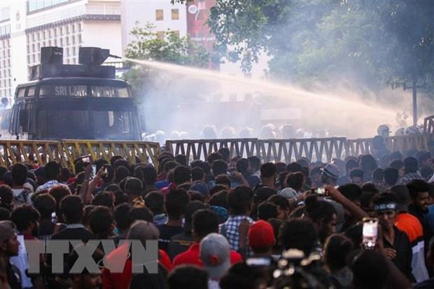 Cảnh sát phun nước để giải tán đám đông biểu tình ở Colombo, Sri Lanka, ngày 8/7/2022. (Ảnh: AFP/TTXVN)