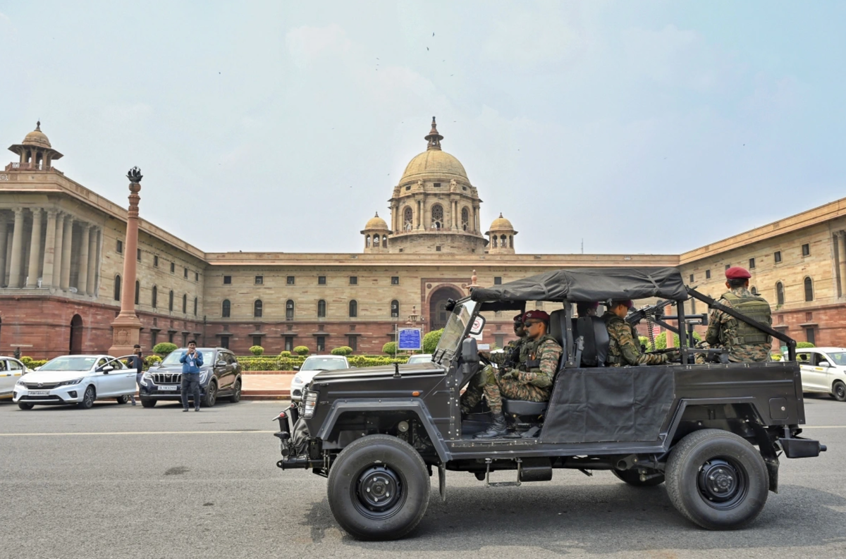 Lực lượng an ninh Ấn Độ tăng cường tuần tra tịa các địa điểm trọng yếu ở Thủ đô New Delhi, Ấn Độ ngày 10/5. (Ảnh: ANI)