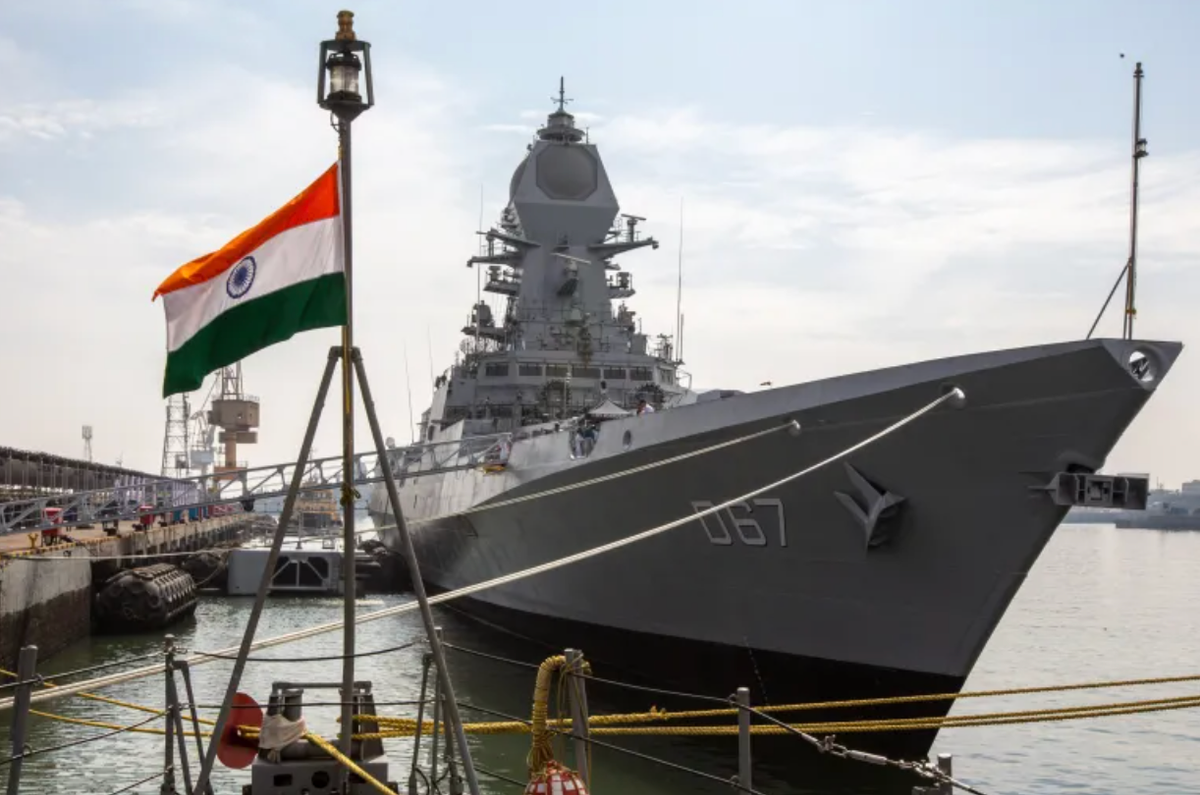 Hình ảnh tàu khu trục mang tên lửa dẫn đường của hải quân Ấn Độ. (Ảnh: EPA)
