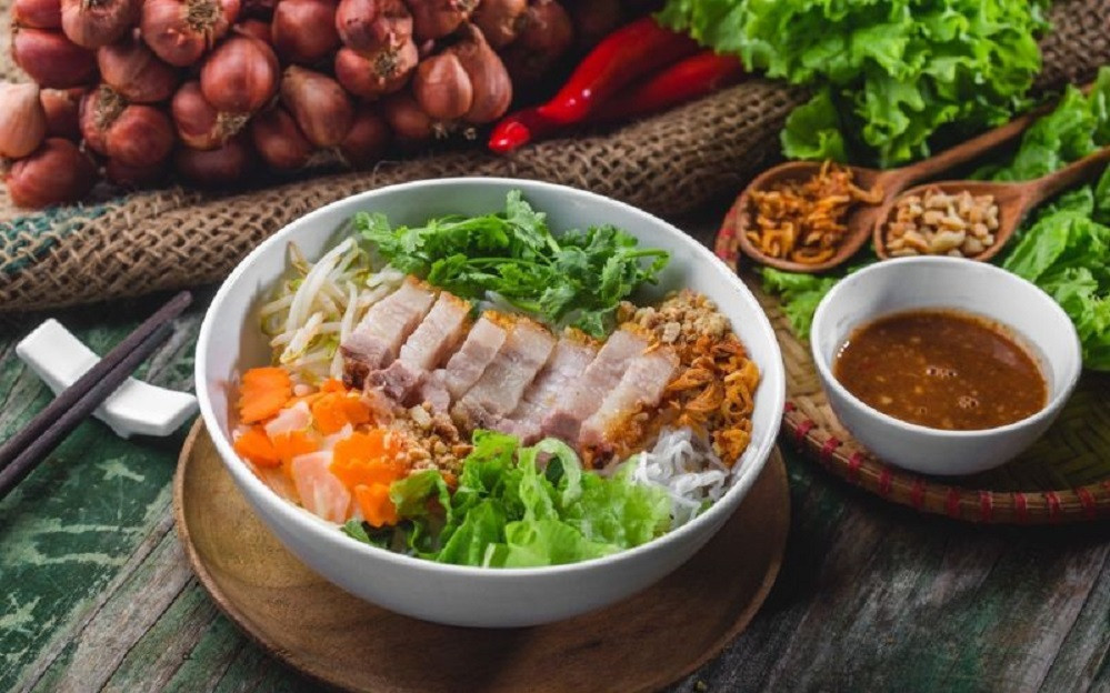 Với những du khách du lịch Đà Nẵng, nhất định không thể không nếm thử tô bún thịt nướng hay vài cuốn thịt nướng thơm phức được cuộn trong lớp bánh ướt mỏng. Món này ăn cùng nước mắm chua ngọt hay nước tương đậm đà thì không gì tuyệt hơn, rất hợp để thưởng thức vào buổi xế chiều.