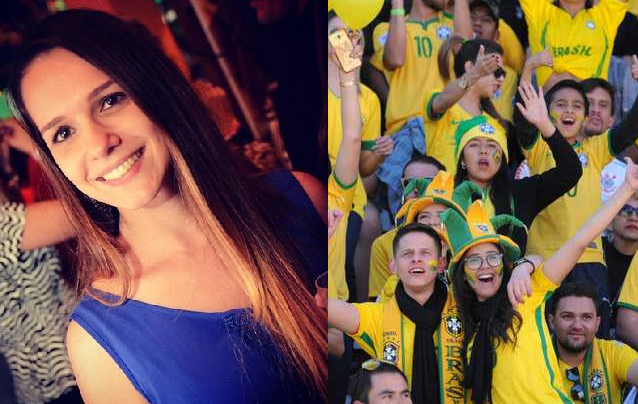 Cô gái 30 tuổi trước đó đang theo dõi trận đấu cùng bạn bè tại nhà ở Itatiba, miền Đông Nam Brazil. Cô ngồi trên ghế, cầm điện thoại ở một tay và nhấp rượu từ một ly thủy tinh ở tay kia.
