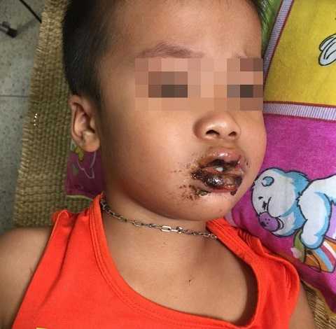 Trường hợp nặng nhất là cháu Nguyễn Công Hùng (5 tuổi), vào viện trong tình trạng sốt cao, môi tím, loét sâu vùng miệng và hạ họng, kèm theo nhiễm trùng, đau bụng, không nuốt được. Ba trường hợp còn lại tổn thương nhẹ hơn, đã được ra viện điều trị tại nhà.