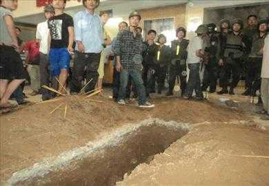 Sau cái chết của sản phụ Trần Thị Loan hàng trăm người thân và người dân đã kéo đến bệnh viện, đào huyệt trong bệnh viện đòi chôn nạn nhân trong sảnh bệnh viện.