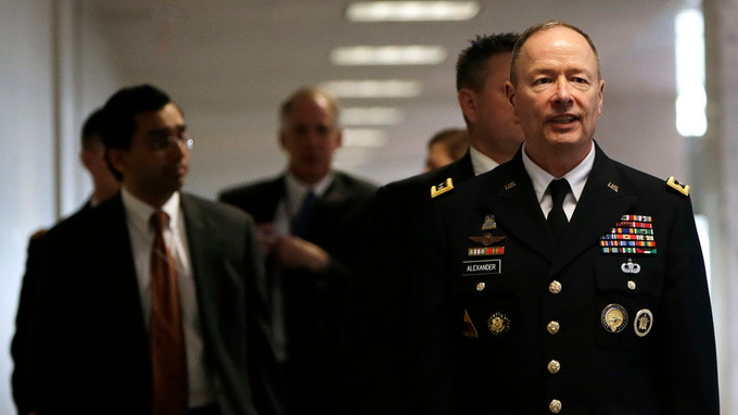 | Giám đốc NSA Keith Alexander bước vào phòng họp cùng Ủy ban Tình báo Thượng viện Mỹ ở Washington hôm 11/3 - Ảnh: Reuters |