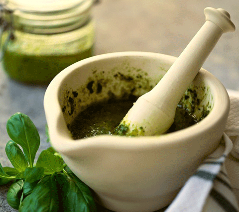 Nước sốt mang tên Pesto nguyên gốc tiếng ý là Pestello có nghĩa là các loại rau, tỏi và phô mai được xay nhuyễn để tạo thành loại nước sốt mỳ được rất nhiều người yêu thích.