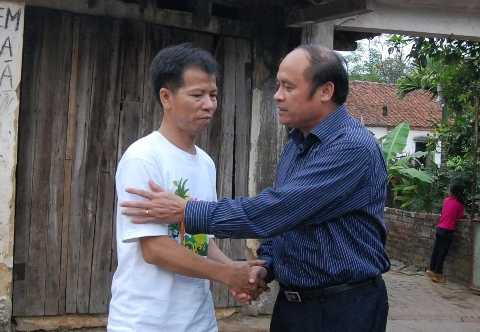 | Phó Chủ tịch UBND tỉnh Bắc Giang (phải) thăm hỏi, động viện ông Chấn. Ảnh: Nguyễn Dũng |