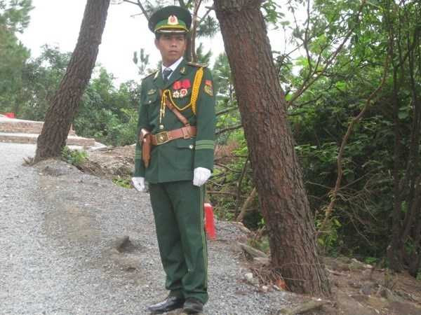 Trước dòng người hối hả xếp hàng chuẩn bị lên viếng mộ, các chiến sỹ biên phòng thay nhau quan sát và không quên nhắc nhở khi thấy vị khách lạ “dính” vào điều cấm: “Xin lỗi! khách lên viếng mộ Đại tướng không được phép mặc quần-áo rách. Mong anh thông cảm.”