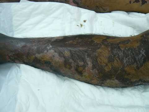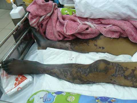 | Bệnh nhân này phải cắt bỏ chân vì bị hoại tử do nhiễm liên cầu khuẩn lợn. |