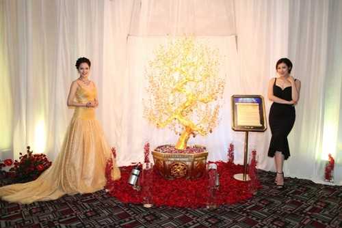 Lần đầu tiên, khán giả được tận mắt chứng kiến vẻ đẹp kỳ thú của cây Đào quý Rồng chín khúc – Vươn thế Thăng Long với những thông số vô cùng ấn tượng: chiều cao 2m, đường kính 1,6m, nguyên liệu 10 kg Vàng, 170 kg Bạc, 50.000 carats Đá quý các loại bao gồm từ Ruby, Sapphire, Ngọc jade, Thạch anh Hồng… Thiên Kim Bách Ngọc cùng các bảo vật quý giá của Tập đoàn DOJI sẽ được trưng bày tại tầng 1, Ruby Plaza, 44 Lê Ngọc Hân, Hai Bà Trưng, Hà Nội đến hết ngày 3/8 để đón chào những người muốn đến chiêm ngưỡng vẻ đẹp của các bảo vật trong chương trình “Mở toang kho báu DOJI”