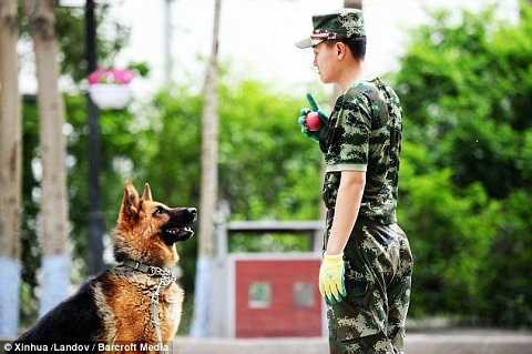 | Một cảnh sát Trung Quốc huấn luyện chó trong một khoá học kéo dài 4 tháng |