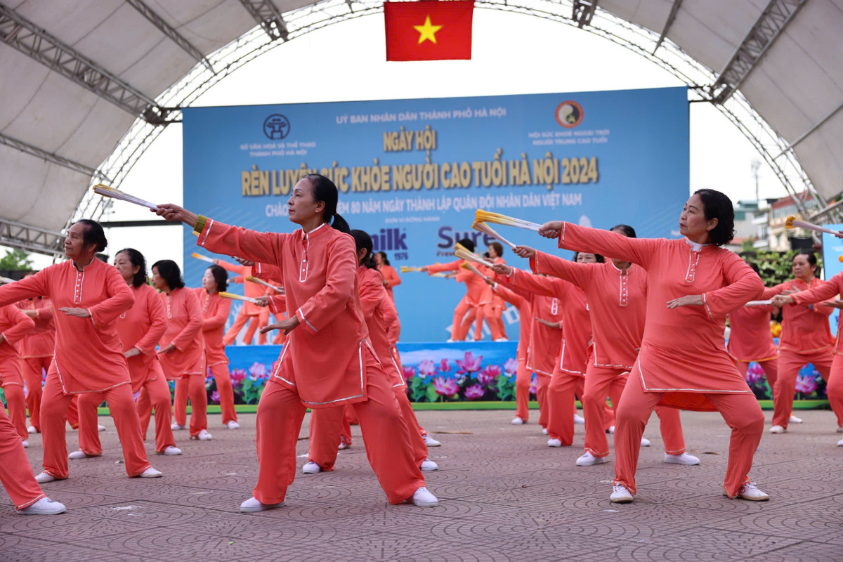 Tại ngày hội này, người dân Thủ đô có dịp chứng kiến những màn đồng diễn của gần 3.000 hội viên Hội Sức khoẻ ngoài trời người trung cao tuổi thành phố Hà Nội (Hội SKNT người TCT TP.Hà Nội). Những động tác khi mềm dẻo, khi khoẻ khoắn kết hợp với thần thái tươi tắn của người cao tuổi mang đến các màn đồng diễn ấn tượng.