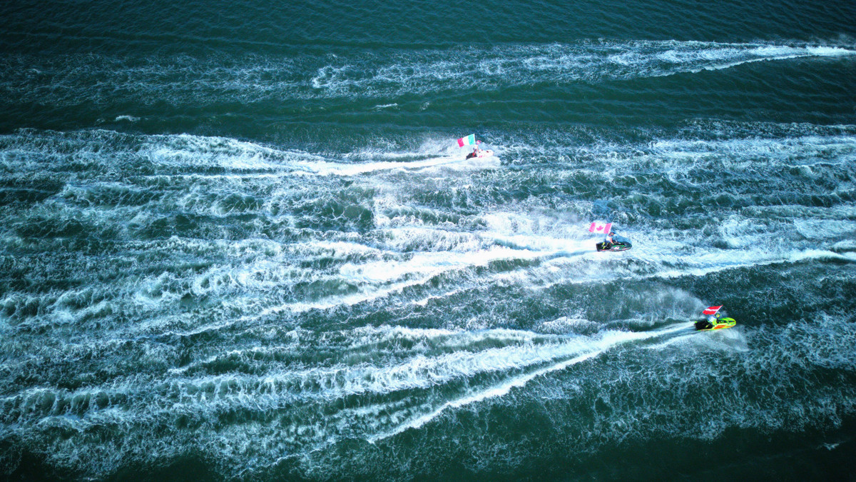 Những màn rượt đuổi đẳng cấp của các tay đua giỏi nhất thế giới khiến mặt đầm dậy sóng trắng xóa.