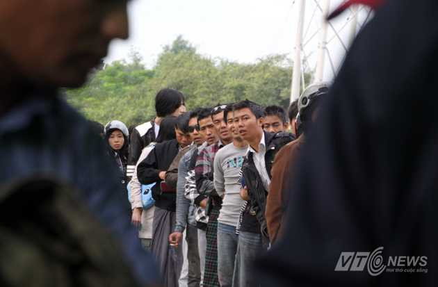 | Người dân Myanmar xếp hàng chờ làm thẻ vào xem các môn thi đấu ở SEA Games 27. |