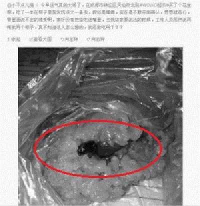 Những ngày gần đây, tại Trung Quốc liên tục xuất hiện những vụ bê bối thực phẩm khiến người dân lo lắng, đầu tiên là việc phát hiện ra chất keo, chất sủi bọt rồi cả ruồi chết trong bánh trôi, bây giờ đến lượt trường hợp suýt cắn nhầm gián trong xôi.