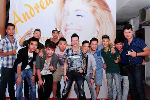 DJ Tommy (đứng giữa), siêu mẫu Sơn Tùng (đội mũ), rapper Mr T và những người bạn thân thiết của Andrea.