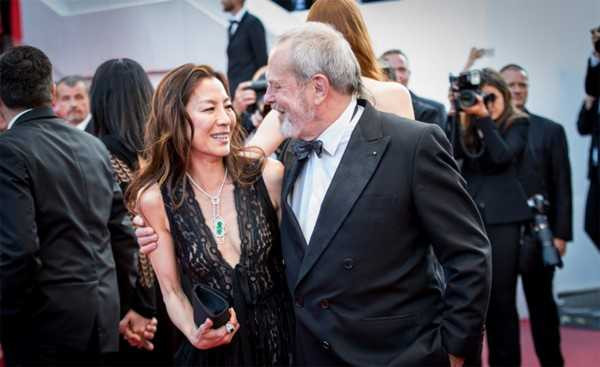 Nữ diễn viên nổi tiếng cùng nam diễn viên Terry Gilliam sánh đôi trên thảm đỏ. Cô và đồng nghiệp cười rạng rỡ bên nhau.