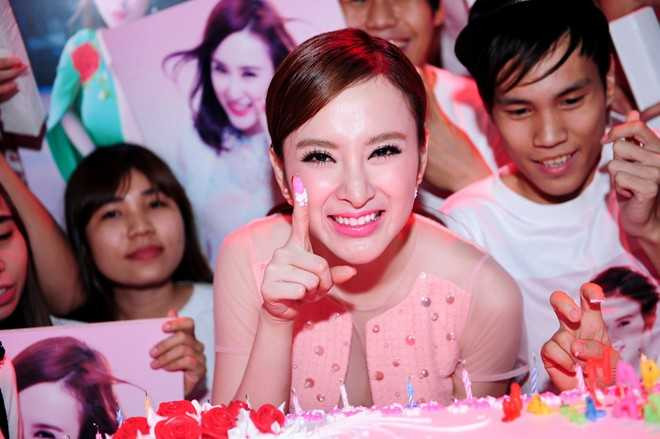 Bà mẹ nhí được khen thân thiện, hòa đồng với các bạn trẻ. Cô cười tít mắt khi fan tung hô, gọi tên cô. Bà mẹ nhí cho biết,cô không nghĩ vào lúc 11h đêm lại có đông fan ở lại chung vui với mình. 'Đây có lẽ là sinh nhật ý nghĩa nhất tuổi 20 của tôi, tôi rất trân trọng tình cảm mà khán giả dành cho mình', Angela Phương Trinh tâm sự.