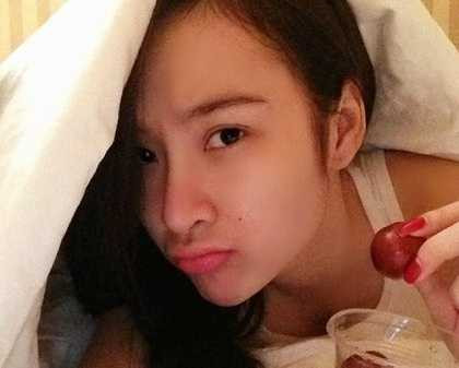 Khác với hình ảnh sexy, nóng bỏng, mặc như không mặc mỗi lần lên bar, Angela Phương Trinh khoe mặt mộc khá đáng yêu.
