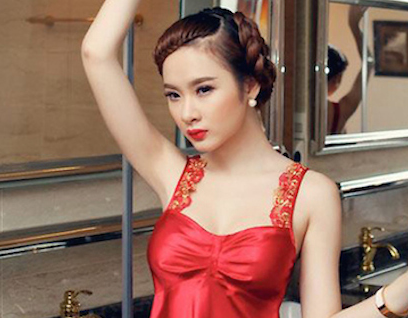 Angela Phương Trinh gợi cảm với váy ngủ đỏ từ vải bóng.