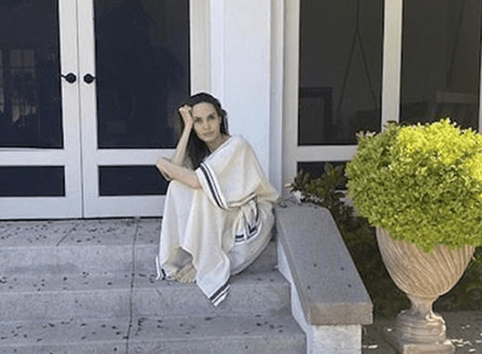 Trong ảnh, Angelina để lộ phần cánh tay khẳng khiu, thân hình gầy đến nỗi nổi rõ xương sau lớp váy rộng thùng thình. Trong bức ảnh chụp cận mặt, Angelina Jolie cũng có vẻ tiều tụy, hốc hác đi khá nhiều.