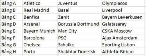 4 đội bóng thuộc nhóm 1 đang rất lo lắng là Barcelona, Bayern Munich, Arsenal và Atletico, bởi họ đều đã có những đối thủ rất mạnh trong bảng là PSG, Man City, Dortmund và Juventus.