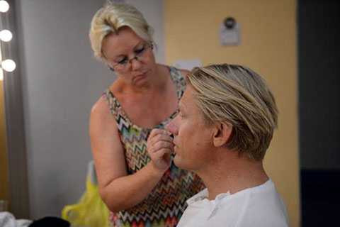 21h45: Huyền thoại Man Utd Peter Schmeichel tất bật chuẩn bị trang điểm trước khi Lễ bốc thăm diễn ra