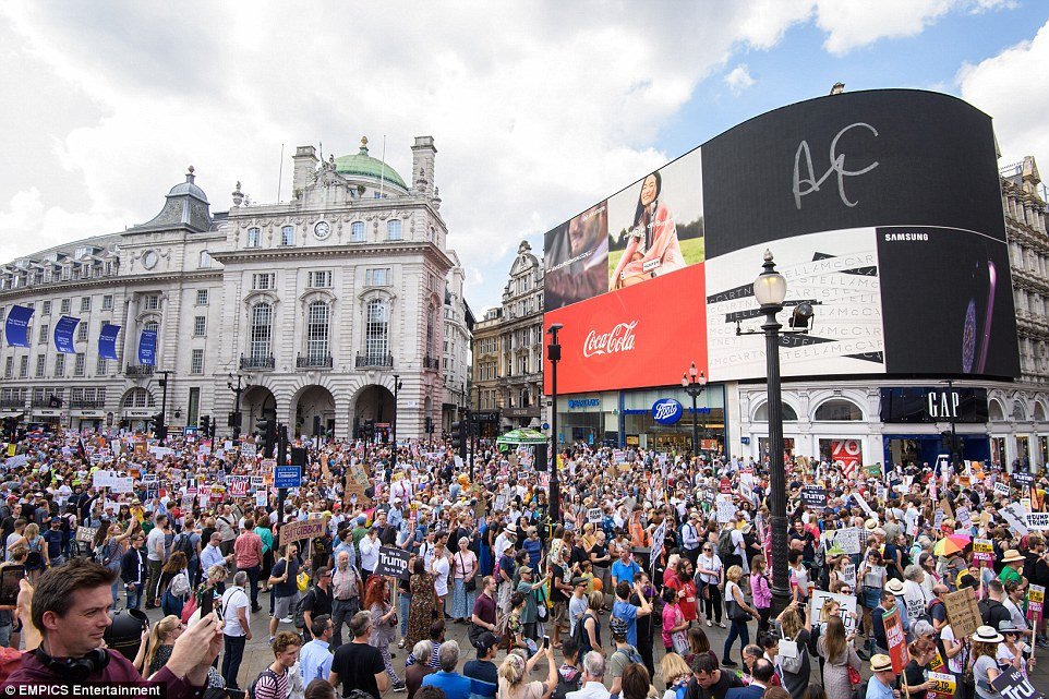 Điểm du lịch nổi tiếng Piccadilly cũng có sự xuất hiện của hàng nghìn người tham gia chiến dịch.