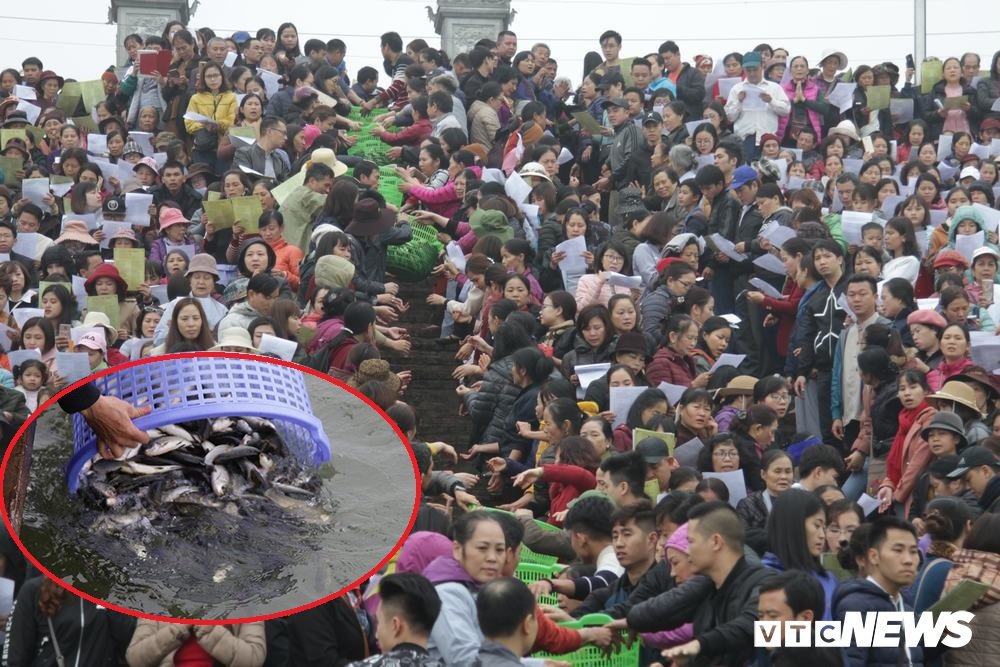 Năm nay, ban tổ chức đã phóng sinh khoảng 10 tấn cá, chủ yếu là cá chép, mè, trắm xuống sông Hồng, đoạn trước cửa đình Bát Tràng.