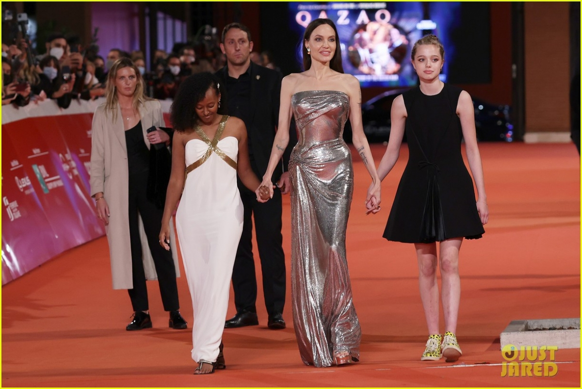 Angelina Jolie cùng hai con gái Shiloh và Zahara đến dự buổi công chiếu phim "Eternals" tại Liên hoan phim Rome diễn ra ngày 24/10.