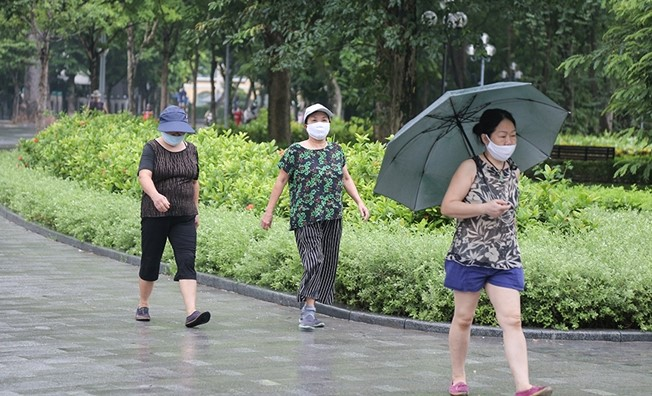 Sáng nay, Hà Nội có mưa nhưng nhiều người vẫn không từ bỏ thói quen, họ che ô đi tập thể dục. Bà Bùi Thị Loan (đường Minh Khai, quận Hai Bà Trưng, Hà Nội) chia sẻ: “Tôi chỉ đi bộ tập thể dục, thể thao ngoài Hồ Gươm, không tiếp xúc hay nói chuyện với bất kỳ ai, để phòng tránh lây lan dịch bệnh cho bản thân mình”.