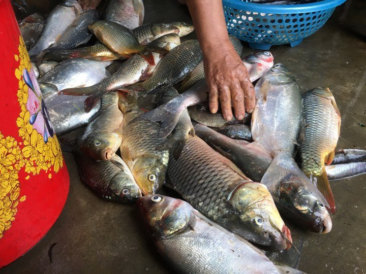 Một người dân cho biết, cá chủ yếu gồm các loại như cá mè, chép, trôi và lóc.