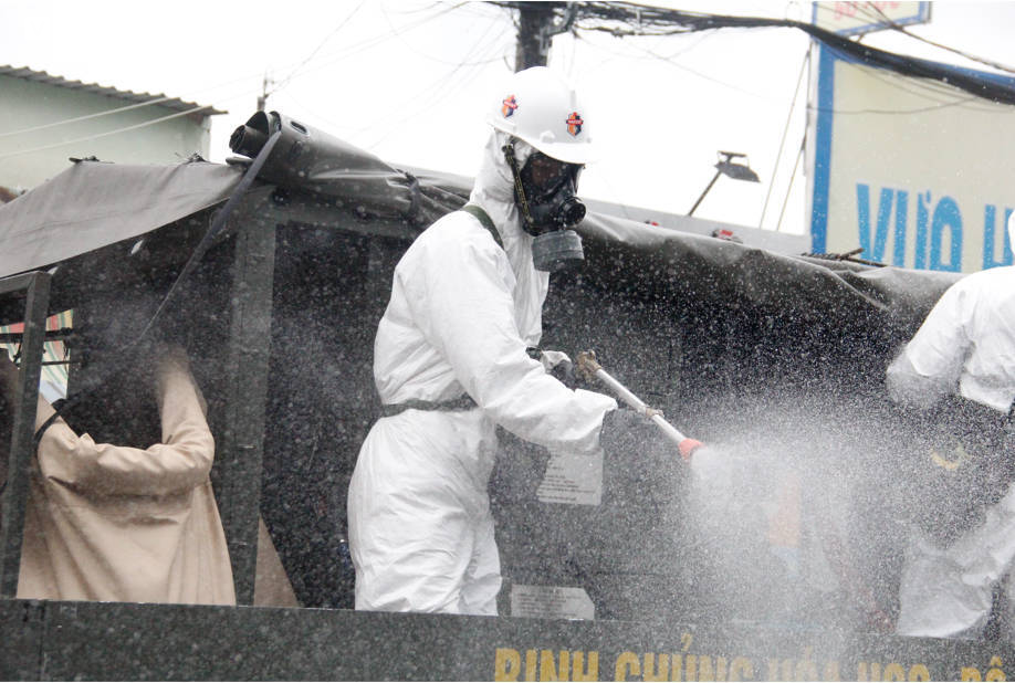 Lực lượng phun tiêu độc, khử khuẩn Bộ Tư lệnh thành phố phối hợp cùng Lữ đoàn 87 (Binh chủng Hóa học), Tiểu đoàn Phòng hóa 38 (Quân khu 7) tiến hành phun tiêu độc, khử khuẩn trên diện rộng với tổng diện tích hơn 300ha, chiều dài tổng tuyến đường gần 1.000km với hơn 500 lượt xe và gần 2.000 lượt cán bộ, chiến sĩ tham gia.